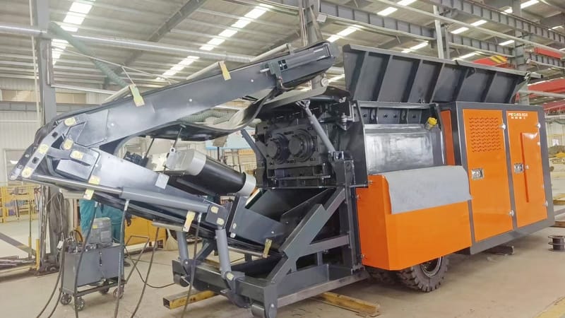 O triturador móvel de eixo duplo é apropriado para materiais duros, como concreto armado, grandes blocos de minério e resíduos industriais. Ele utiliza motores duplos combinados com tecnologia de sincronização de engrenagens para alcançar alto desempenho em projetos de trituração. Seus dois eixos contrarrotativos proporcionam um corte e uma trituração poderosos por meio da rotação reversa, alcançando uma capacidade de processamento 30% maior em comparação com os modelos tradicionais.