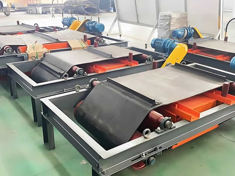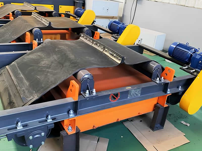 Nosso separador magnético é convenientemente suspenso a uma altura de 300 a 350 mm acima da correia transportadora, permitindo que os materiais passem suavemente por baixo. Ele captura, de maneira eficiente, metais ferrosos que variam de 0,002 a 2,5 kg, misturados a materiais não magnéticos. Com um design de ímã permanente autolimpante, esse separador garante a remoção confiável de metais magnéticos valiosos, como o ferro, e altas taxas de recuperação, ajudando você a melhorar a pureza do material e a aumentar a eficiência geral do processo.